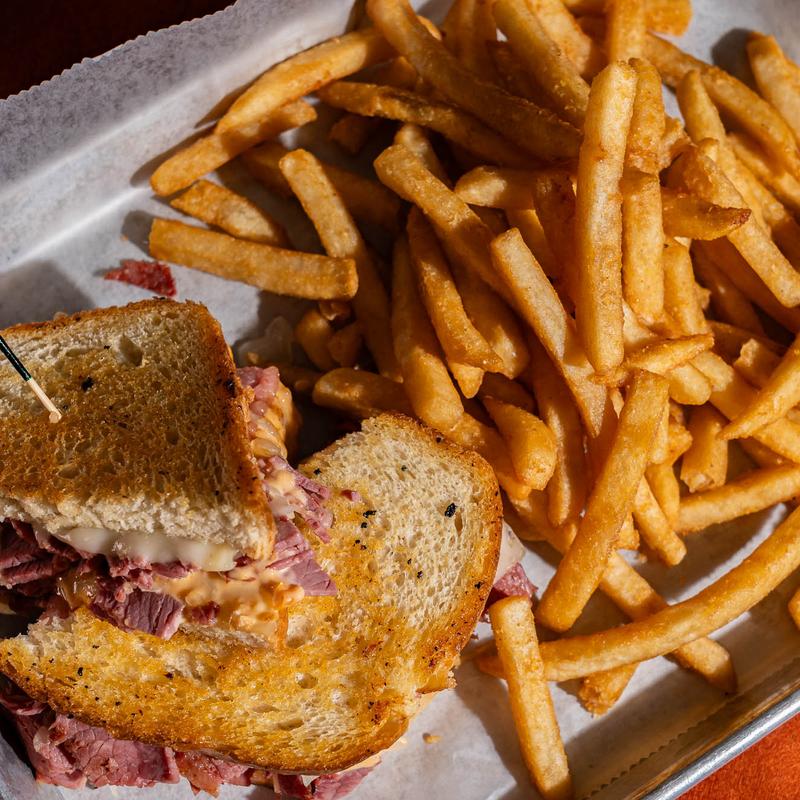 Housemade corned beef w/ sauerkraut, Swiss & 1,000 Island. Served on toasted sourdough